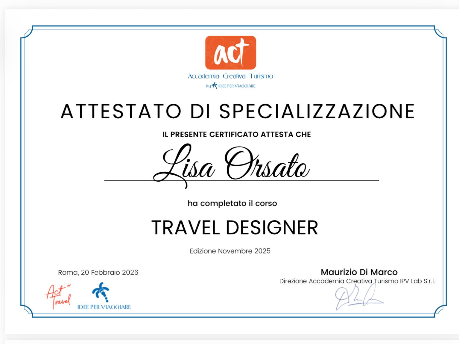 Nel 2025 ho deciso di trasformare quella che era sempre stata una passione nel mio lavoro: mi sono iscritta a un corso per diventare Travel Designer, con un lavoro fisso, un mutuo da pagare e la testa piena di sogni.